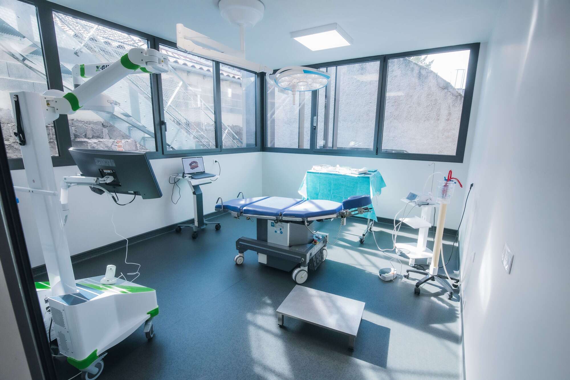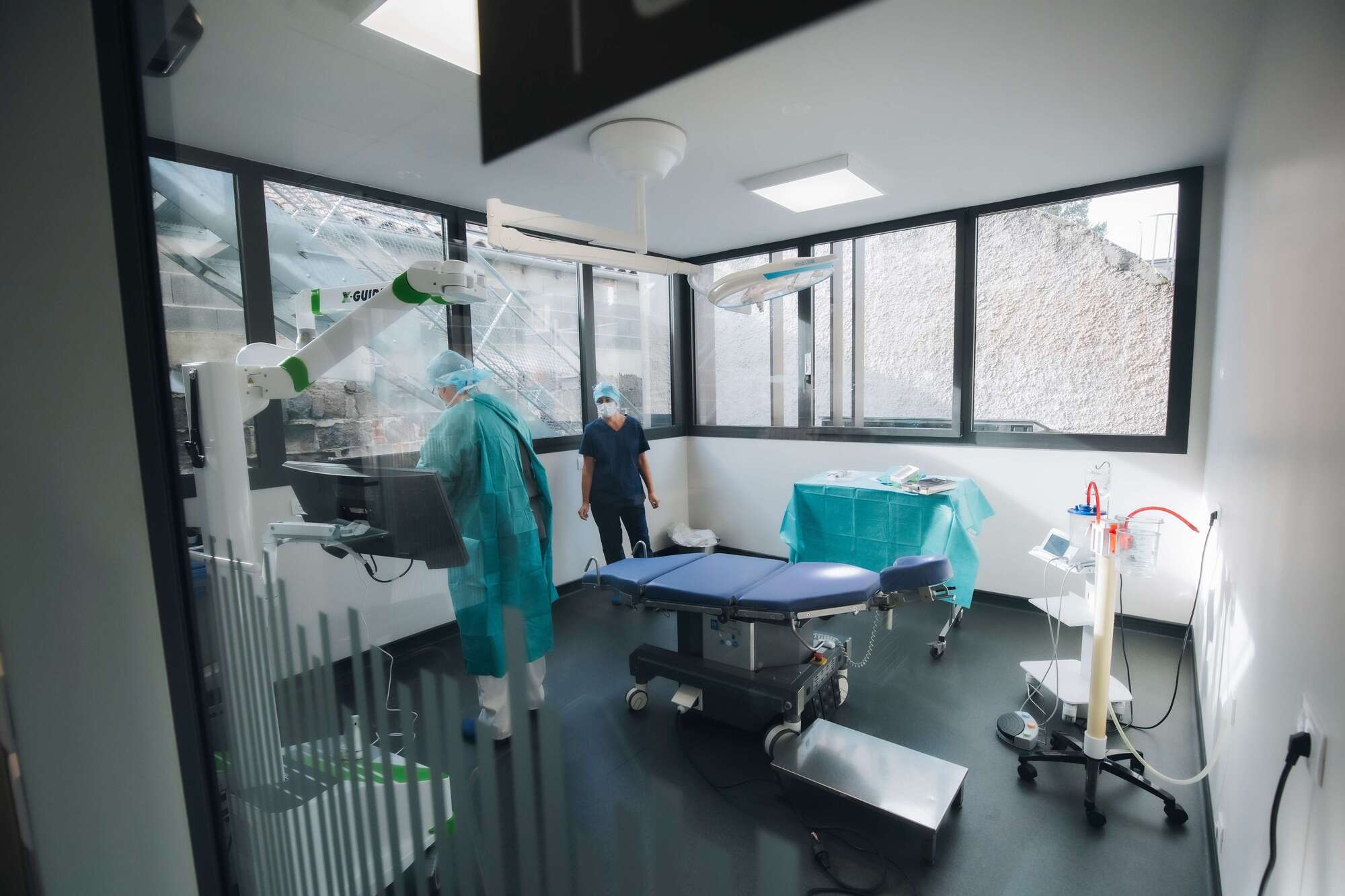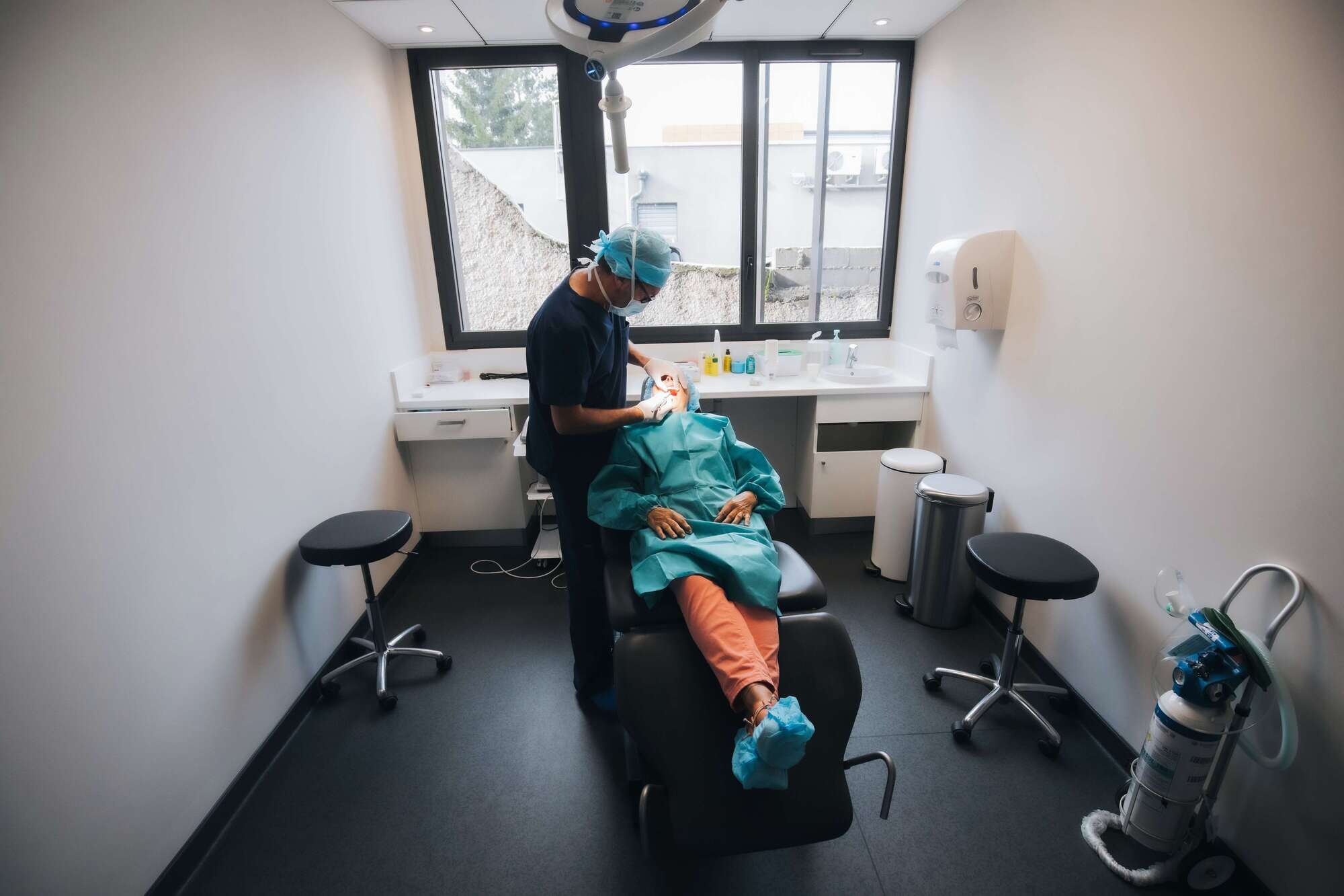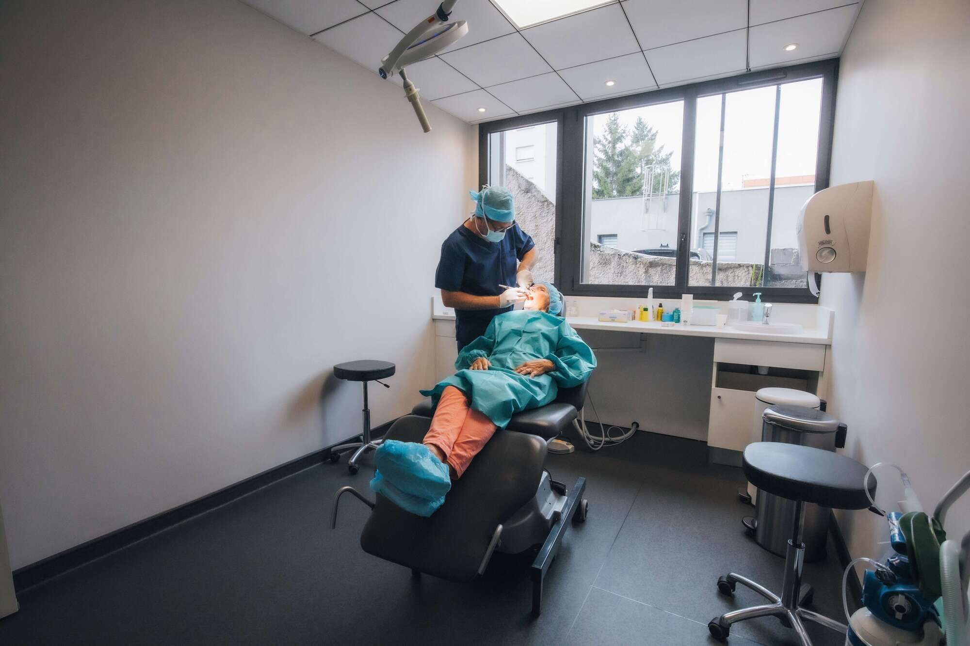 Nous disposons d'une structure qui nous permet de prendre en charge les patients pour des actes chirurgicaux sous anesthésie locale : implants, chirurgie de l'os et de la gencive, extractions notamment des dents de sagesse.